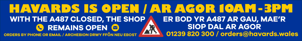 The good news is that Siop Havards will be open throughout the period the main road is closed to thru traffic – albeit with slightly reduced hours and importantly offering a ‘click & collect’ style service too.