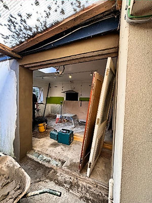 With the kitchen and homewares section re-housed into the hardware and small tools area, the builders have quickly knocked through to the office and stripped out the kitchen. The access to the back yard has also been enlarged in preparation for building the extension in the New Year.